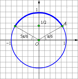Нарисуем тригонометрическую окружность и отметим на ней точки, для которых ордината превосходит