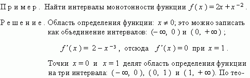 Теорема Дарбу. Точки, в которых производная функции равна 0 или не существует, делят область определения функции на интервалы, внутри которых производная сохраняет знак.