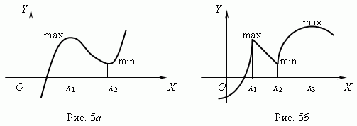 В точках x 1 , x 2 (рис.5 a) и x 3 (рис.5 b) производная равна 0; в точках x 1 , x 2(рис.5 б) производная не существует. Но все они точки экстремума.