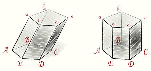 Призма — это многогранник, у которого две грани (основания призмы) — равные многоугольники с соотвественно параллельными сторонами. Остальные грани — параллелограммы, плоскости которых параллельны одной прямой.