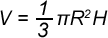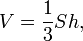 Объем круглого конуса равен трети произведения площади основания S на высоту H: