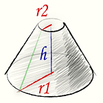 Объем усеченного конуса вычисляется по формуле: