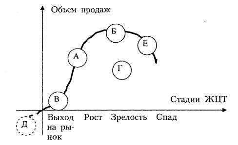 Рекомендуется включать в товарную номенклатуру одновременно товары из групп, находящихся на разных стадиях жизненного цикла (рис. 20).