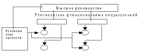 Достоинством такой структуры является достаточная гибкость, ориентация на рынок. К недостаткам можно отнести возможность двойного подчинения отдельных исполнителей руководителю проекта и руководителю функционального подразделения.