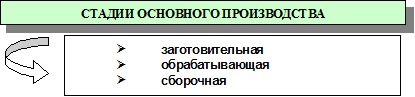 Совокупность основных процессов образует основное производство, которое обычно состоит из трех стадий: заготовительной, обрабатывающей и сборочной.
