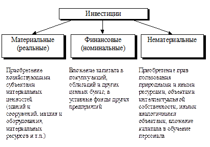 Инвестиции – денежные средства, ценные бумаги, иное имущество, в том числе имущественные права, иные права, имеющие денежную оценку, вкладываемые в объекты предпринимательской и (или) иной деятельности в целях получения прибыли и (или) достижения иного полезного эффекта.