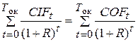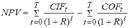 – платежи денежных средств, связанных с реализацией проекта, в момент времени t (выходной денежный поток); R – ставка дисконтирования, принятая для оценки анализируемого проекта; T – время реализации проекта, определяемое как количество процентных периодов. Если в качестве процентного периода принимается год, то T определяет количество лет, в течение которых реализуется проект (жизненный цикл проекта).
