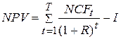 В частности, если инвестиции в проект производятся единовременно, то NPV может быть рассчитан следующим образом: