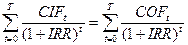 где IRR – искомая ставка внутренней рентабельности проекта.