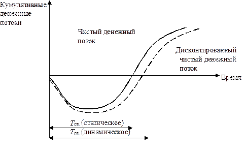 Очевидно, что если период окупаемости проекта превышает инвестиционный период, то проект не окупается и является экономически не выгодным. Следует заметить, что период окупаемости в динамической постановке типового инвестиционного проекта, в котором на начальных стадиях (предынвестиционной и инвестиционной) совершаются вложения капитала, а в дальнейшем, на эксплуатационной стадии, образуется прибыль от вложения капитала, превышает значение этого показателя в статической постановке.