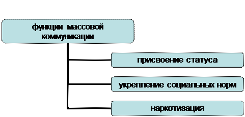 Это функции «присвоения статуса», то есть повышение или снижение значимости субъектов или событий в сознании общества (известно, что постоянное появление или, наоборот исчезновение какого-либо политика с экранов телевизоров способствует формированию представлений об усилении или уменьшении его влияния на политический процесс).