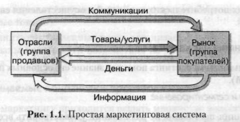 Традиционно «рынком» называли место, где покупатели и продавцы собирались, чтобы обменяться товарами. Экономисты описывают рынок как совокупность покупателей и продавцов, заключающих сделки в отношении того или иного продукта или товарной категории (рынок недвижимости или рынок фуража). В то же время современные маркетологи рассматривают совокупность компаний- производителей как отрасль, а покупателей выпускаемых ими товаров как рынок (рис. 1.1). Продавцы направляют на рынок потоки товаров, услуг и коммуникаций (реклама, прямая почтовая рассылка и т. д.); в обмен они получают деньги и информацию (об отношении к товарам, сведения о реализации). Внутренний круг на рис. 1.1 показывает обмен денег на товары и услуги, внешний — информационный обмен.