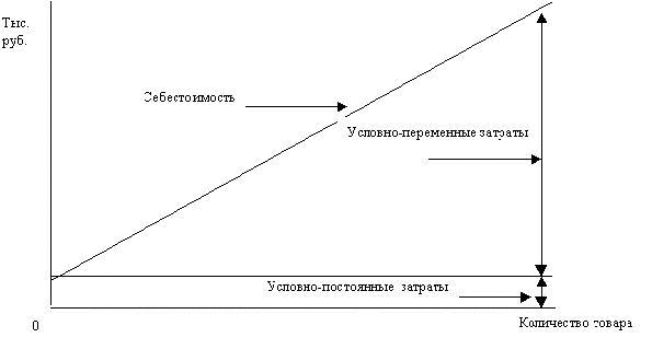 График изменения себестоимости продукции, представленный (на рис.) позволяет оценить вид функции затрат (прямой зависимости или S-образного вида).