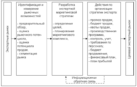 С целью выяснения этих аспектов должна быть собрана соответствующая информация о целевом рынке. Процесс планирования маркетинговой деятельности по экспорту приведен на рис.