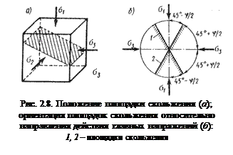 произойдет сдвиг по некоторой площадке, наклоненной к горизонтальной плоскости, причем промежуточное главное напряжение