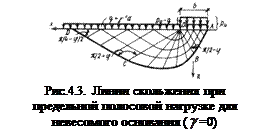 На рис. 4.3. представлена одна (левая) область предельного равновесия и два «семейства» линий скольжении, которые образуют ромбы скольжения с определенными углами наклона линий.