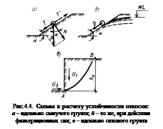 4.4.1. Устойчивость откосов в идеально сыпучих грунтах (ϕ ≠0; с=0)