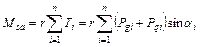 Момент сил, вращающих отсек вокруг т. О, определится как: