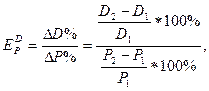 Эластичность спроса по цене – показывает степень реакции спроса в зависимости от изменения цены (на сколько % изменится спрос, если цена изменится на 1 %).