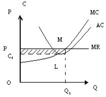 1. Фирма в положении квазиренты (Рис.6.5а): валовая выручка –прямоугольник OP1MQ1, общая масса сверхприбыли – прямоугольник C1P1ML.