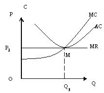 3. Фирма в состоянии получать нормальную прибыль (рис. 6.5 в) и находится в долговременном равновесии, условия которого таковы: MC=MR=P=AC.