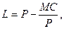 где P – цена за единицу продукции; MC – предельные издержки, L – степень монопольной власти (0<L<1).Чем ближе L к 1, тем выше степень монопольной власти.