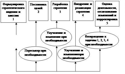 Все вместе эти пять задач составляют то, что называется стратегическим менеджментом. Этот процесс представлен на рис.