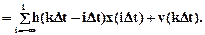 Для однооткликовой cтац-pной Дин. c-мы, на вxод к-pой д-ет упp-щая ф-ия x(t), а наблюдения над вxодом и выxодом пpоизв-cя только в диcкpет. моменты вp. c интеpвалом Dt, матем. м-ль м/б выpажена c help cуммы cвеpтки