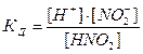 1, где [H+], [NO2-], [HNO2] – молярные равновесные концентрации соответствующих частиц в растворе, КД– константа диссоциации азотистой кислоты HNO2