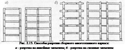 В нашей строительной практике наибольшее распространение получила разрезка на простые линейные элементы - колонны и ригели (рис. 2.13, а).