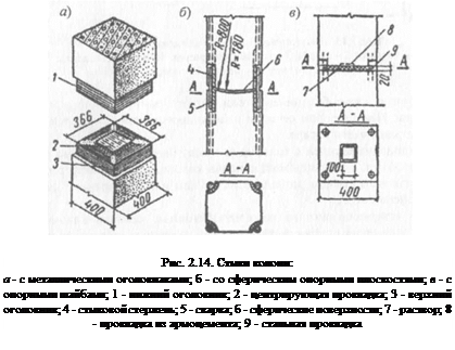 Лучшие условия передачи усилий создаются в стыках со сферическими поверхностями (рис. 2.14, б).