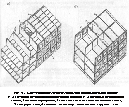 По своей конструктивной схеме крупнопанельные здания могут быть бескаркасными и каркасными. Примеры возможных конструктивных схем бескаркасных зданий показаны на рис. 3.2.