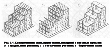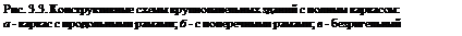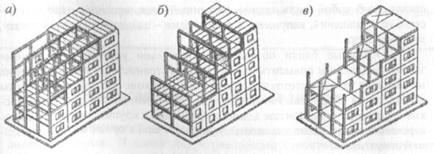 Каркасно-панельные дома могут иметь каркас с продольными рамами, с поперечными рамами и безригельный (рис. 3.3).