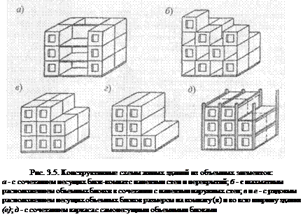 Объемные блоки могут быть применены в сочетании с крупнопанельными конструкциями и как основные конструктивные элементы здания (рис. 3.5).