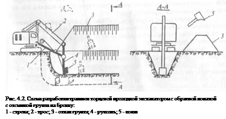 Разрабатываемый грунт обычно отсыпают в отвал на бровку траншеи, а излишки, не нужные для обратной засыпки, - на транспортные средства.