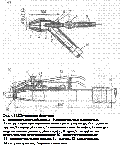 В настоящее время промышленность выпускает разнообразные укомплектованные штукатурные станции, состоящие из растворонасоса, растворопровода из металлических труб, резиновых шлангов с соединительными частями и штукатурных форсунок (рис. 4.14). При небольшом объеме штукатурных работ рекомендуется пользоваться передвижными штукатурными станциями, смонтированными на двухосных прицепах. При помощи форсунки на поверхность наносят обрызг, фунт и накрывочный слой.