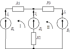 − составляем уравнения по второму закону Кирхгофа для независимых контуров. При составлении пользуются правилами: если направление ЭДС совпадает с направлением обхода контура, то в уравнение она подставляется со знаком «+», в противном случае с «-»; если направление тока в сопротивлении совпадает с направлением обхода контура, то падение напряжения подставляется со знаком «+», в противном случае со знаком «-».
