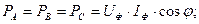 опуская индексы для линейных токов и напряжения, S = √3 U I; P = √3 U I cosφ.