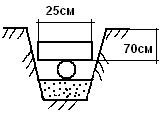 Глубина от земли до кабеля 70см. Сверху – защита (обычно кирпичами). Можно укладывать кабели в асбестоцементные и полиэтиленовые трубы (под дорогами только в них).