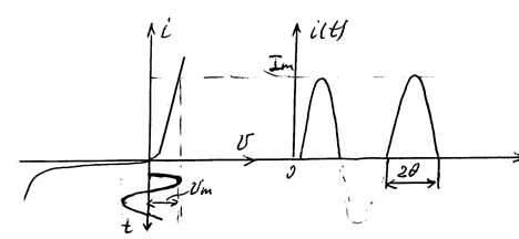 Рис. 25. Вольт-амперная характеристика диода и график изменения тока на Rн (рис. 24)