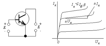 В этом случае в базу и в эмиттер подаются напряжения одного знака, но в базу подаётся не больше 0,7 В, а в коллектор – 5...15 В.