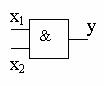 1) Конъюнкция (операция "и", логическое умножение). Конъюнкция нескольких переменных равна 1 лишь тогда, когда все переменные равны 1. Конъюнкция обозначается в виде произведения у = х1·х2, или у = х1х2, или у = х1Λх2. Обозначение элемента в схеме приведено на рис. 40.
