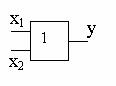 2) Дизъюнкция (операция "или", логическое сложение). Дизъюнкция нескольких переменных равна 1, если хотя бы одна из переменных равна 1. Дизъюнкция обозначается в виде суммы: у = х1+х2, или у = х1Vх2. Обозначение элемента в схеме приведено на рис.42.