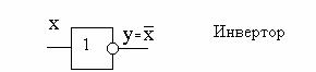 3) Инверсия (операция "не", логическое отрицание). Обозначение элемента в схеме приведено на рис 43.