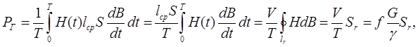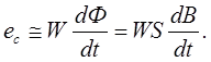 где Ф — магнитный поток, сосредоточенный практически полностью в магнитопроводе (сердечнике). При этом Ф=BS, где S — площадь сечения сердечника, B — магнитная индукция [Тл].
