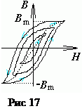 Кривая намагничивания – зависимость B от H (см. рис. 17). Она отражена семейством кривых, при циклическом перемагничивании (петель гистерезиса), каждая из которых соответствует определенной амплитуде магнитной индукции B. Предельная петля гистерезиса получается при амплитуде Bm, вызывающей полное насыщение магнитопровода. Ширина петли (при данном Bm) и ее вид зависят от материала сердечника.