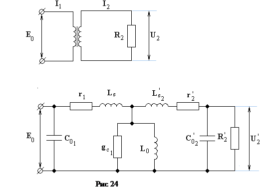 Для трансформатора (рис. 24 а) эквивалентная схема представлена на рис. 24 б):