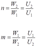 При пересчете во вторичную обмотку формулы сохраняют силу при замене m на n и при этом при одновременной замене 1 на 2.