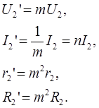 При часто используемом на практике пересчете параметров эквивалентной схемы к первичной обмотке (или к вторичной) обычно используют: