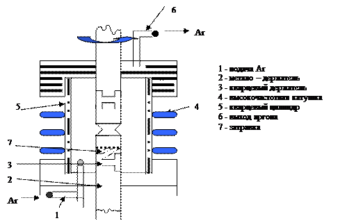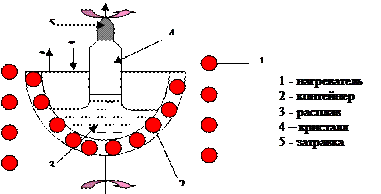 Скорость выращивания кристалла методом БЗП вдвое больше, чем по методу Чохральского, и в отличие от него затравка подводится снизу. Растущий кристалл "висит" на исходном поликристалле, откуда он вытягивается вниз от зоны расплава. Для обеспечения начального роста бездислокационного участка монокристалла сначала проводится вытягивание "тонкой шейки" диаметром 2-3 мм и длиной 10-20 мм, после чего кристалл доращивают до требуемого диаметра.